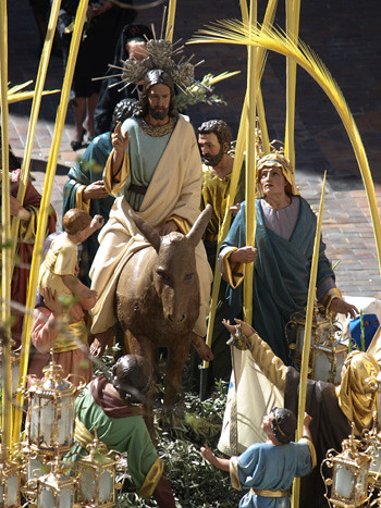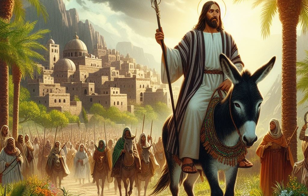 Iba para Jerusalén, donde lo esperaban a eso del mediodía, pero no llegó. Quería cumplir la profecía 9.9 de Zacarías: «¡Alégrate mucho, hija de Sion! ¡Grita de alegría, hija de Jerusalén! ¡Mira, tu rey viene a ti, justo y salvador, humilde y montado en un asno, en un potrillo, hijo de asna!». Era el Mesías y tenía que llevar la paz a la gran ciudad pero necesitaba hacerlo de manera humilde, serena, no como los belicosos reyes mundanos con grandes caballos henchidos de ornamentos guerreros. Pidió por eso a dos de sus discípulos que le buscaran un burro antes de iniciar su camino. Era Domingo de Ramos y estaban en Betfagé, una bonita ciudad de Betania conocida como «La casa de los higos verdes». Se sentía sosegado después de una dolorosa semana rezando en el monte de los Olivos.