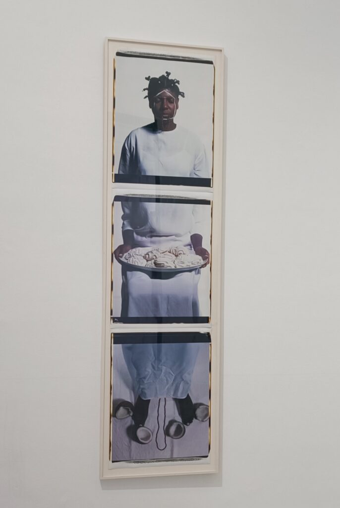 En toda la obra de Campos-Pons está muy presente la diáspora africana y la memoria de la esclavitud. Aquí, utilizando la fotografía de su propio cuerpo como un archivo histórico, destaca la fragmentación que produce la migración en las personas que la sufren. El título sugiere la resistencia simbólica ante todo y ante todos.