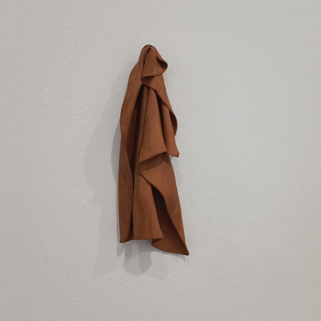 Juana Valdés. Cuba 1963. “Trapos de porcelana de color castaño”. Porcelana cocida.