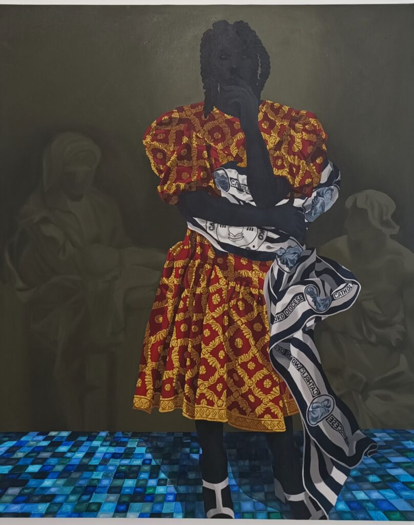 Esta obra se encuadra en una línea de trabajo donde las celebraciones, los rituales y los encuentros, son el punto de partida para hablar de las experiencias de las mujeres negras. Nneji otorga significado al espacio femenino con un prolijo detalle en sus composiciones. “Día de fiesta” nos habla de lo cotidiano, de la intimidad y también de la dignidad.