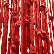 Recupera formas de escritura no alfabética, rituales amenazados de desaparición. Como el quipu (del quechua “nudo”), un antiguo instrumento de comunicación andino donde se registra información por medio de cuerdas con nudos, que estuvo prohibido durante el período colonial español.