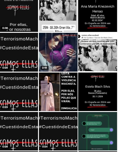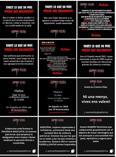 En una tarde espléndida, bajo el sol de otoño primero y la media luna creciente después, una veintena de mujeres de la Plataforma Feminista Somos Ellas, cuyo principal objetivo es erradicar los feminicidios dándoles visibilidad, han recorrido en absoluto silencio durante dos horas el centro histórico sevillano, con túnicas, máscaras y pancartas con los nombres de las víctimas, oficiales y no oficiales, del terrorismo machista.