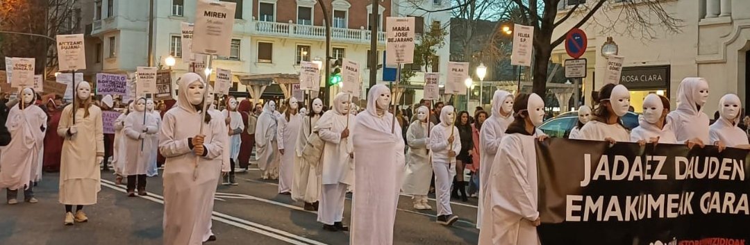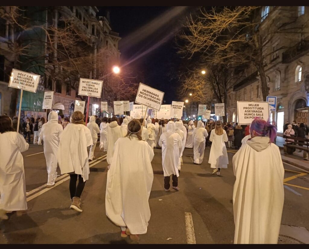 Respetuoso, digno, intenso y clamoroso silencio, por ellas y por todas las que están sufriendo la violencia patriarcal y estructural del maltrato en todas sus variantes, del peligro del corredor de la muerte, de las agresiones sexuales, del tráfico, de las mafias, de los puteros… frente a un Estado cómplice que no las protege, aunque le vaya en el sueldo.