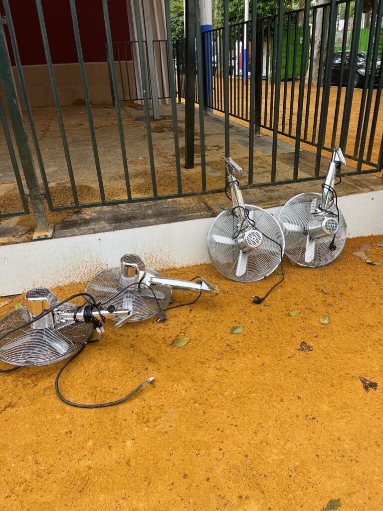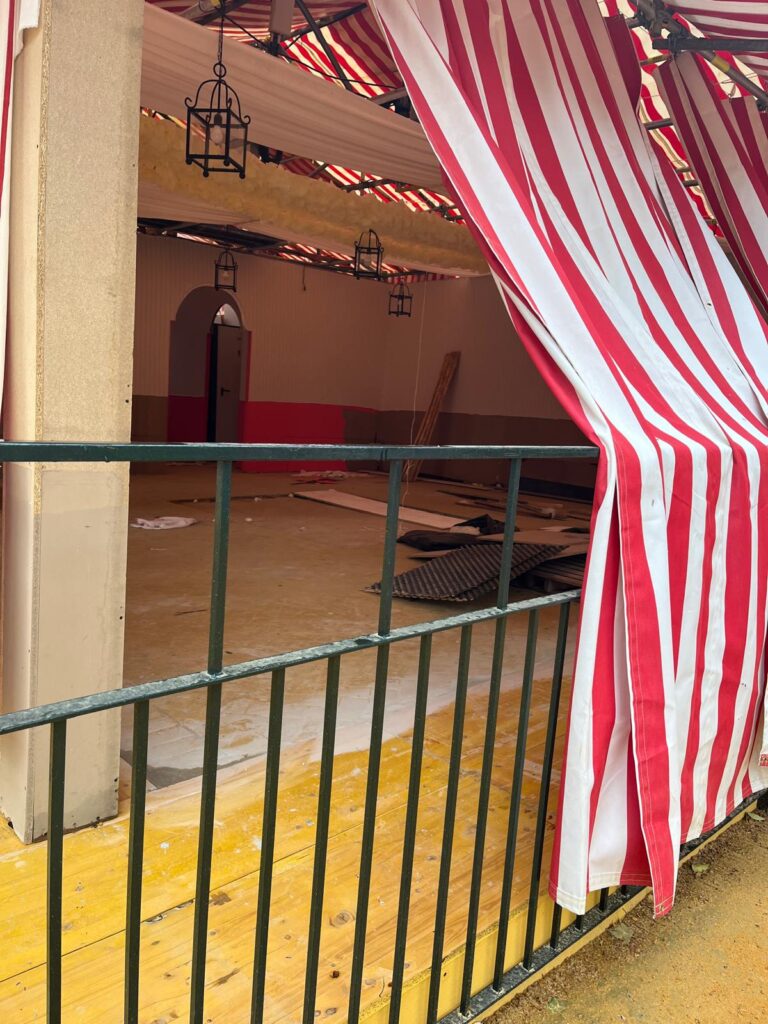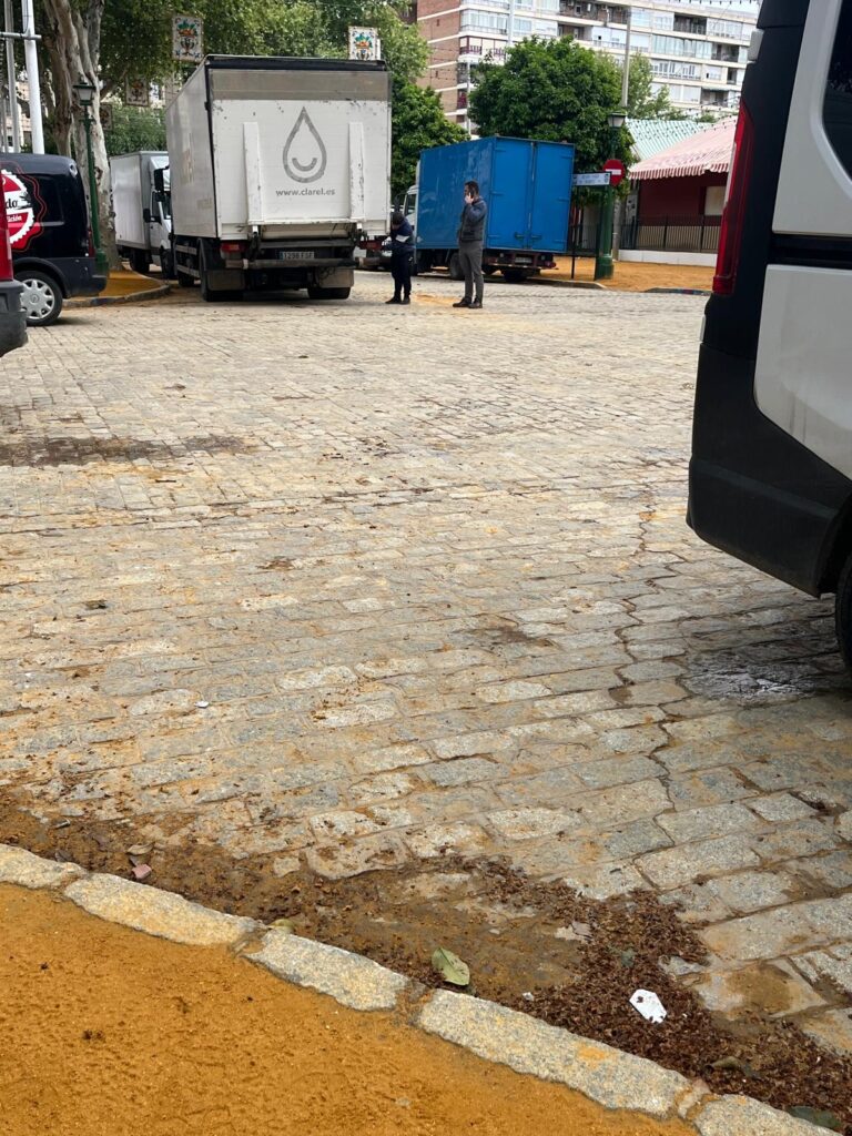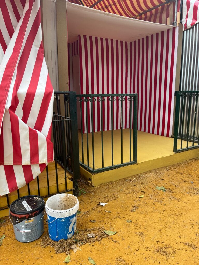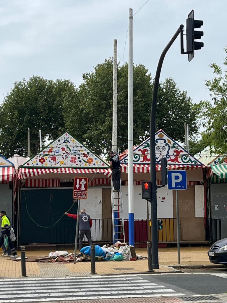 Hoy luce el sol y se espera que la semana de feria sea este año de las más calurosas pero el reciente mal clima que hemos padecido en los últimos meses , con lluvias y vientos fuertes, ha dificultado la labor de estos profesionales. El albero se ha visto convertido en barro en unas aceras abarrotadas de basura y quienes allí trabajan van con el lógico retraso en sus respectivas labores. Aún hay mucho trabajo por hacer en el recinto hasta la noche del «Pescaíto» pero cientos de mujeres y hombres se encuentran ultimando los detalles para que no falte un perejil en esta fiesta universal.