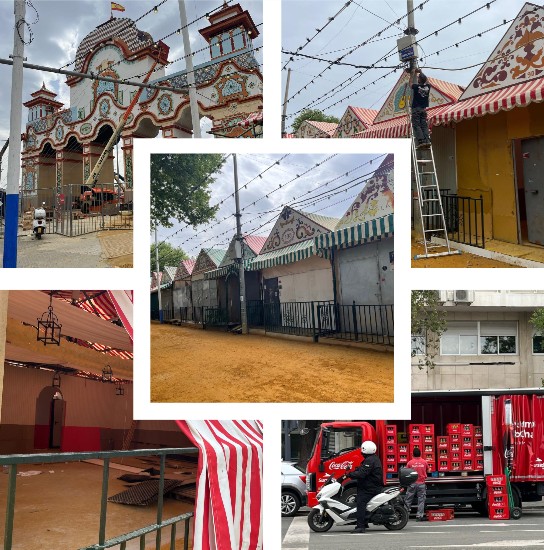 Son muchos los preparativos necesarios para construir el marco idóneo de una de las fiestas más universales del mundo que no solo disfrutará la ciudadanía sevillana sino también quienes quieran acercarse desde otros lugares cercanos o remotos. Por el momento, las calles bautizadas con nombres de toreros históricos ofrecen un auténtico trasiego de profesionales del catering, la electricidad, la iluminación, el sonido, la pintura, la construcción, decoración, etc. para quienes, créanlo, suponen un arduo esfuerzo estos últimos toques. Así lo cuenta Soledad, una decoradora que se encuentra trabajando en los preparativos de preferia: