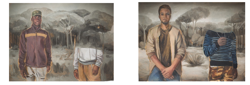 M.S.: -¿En qué momento surge la idea de reflejar a través de una exposición, la situación por la que atraviesan los inmigrantes cuando llegan a Europa? Hay un primer lienzo que abre la exposición, inspirado en una obra clásica “El sueño de Ossian» de Ingres». ¿Por qué has elegido ese cuadro?.