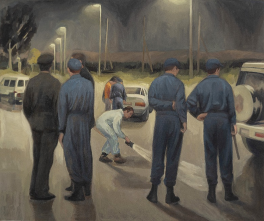 “A veces me asaltan esas pinturas y desde ese dialogo voy construyendo mi propia obra. Por ejemplo, el cuadro de “La ronda de noche” de Rembrandt, que aparece cuando veo un coche policía haciendo una ronda de noche en una urbanización”.