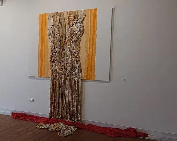 MS: En algunas de las obras expuestas los pliegues de las telas imprimen un movimiento que se percibe inmediatamente, tiene mucha fuerza. ¿Cómo se llega a producir ese movimiento?.