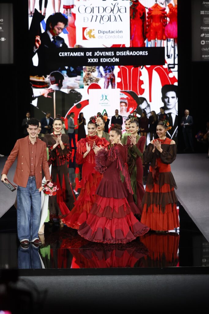“Llegar aquí ha supuesto mucho esfuerzo, ya que estoy estudiando y, a la vez, he estado haciendo esta colección, pero con muchas ganas. Es un homenaje a mi madre por esos cortes, por esa delicadeza, por el enrejado y las flores pintadas. Quería presentarme a SIMOF desde hace cuatro”, ha manifestado el ganador. El premio mención especial ha recaído en Alejandro Gordillo, de Los Barrios (Cádiz) con su colección «Rodeo». En total nueve jóvenes promesas del diseño de moda flamenca han participado en este Certamen.